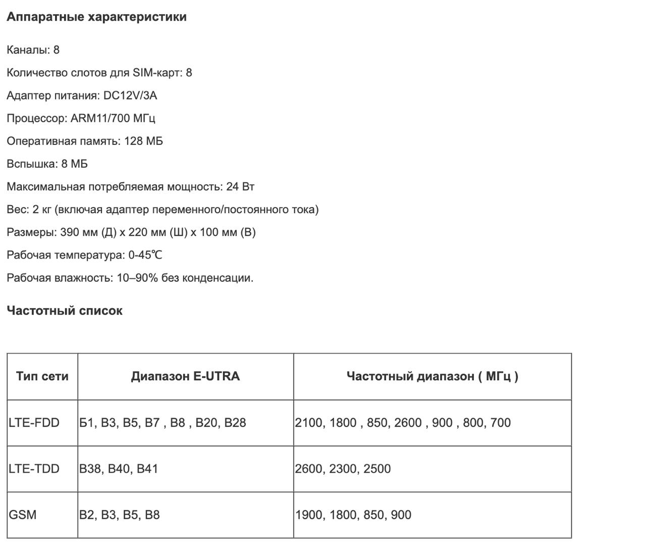 Шлюз работает в сетях LTE-FDD, LTE-TDD и GSM, поддерживает технологию VoLTE HD Voice для высокого качества звука и обеспечивает стабильную работу даже при высокой нагрузке.